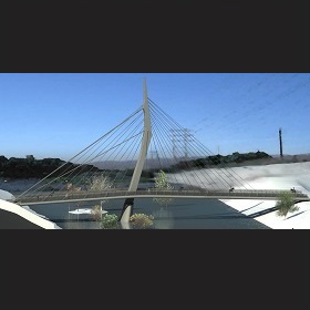 Pedestrian and Equestrian cables stayed bridge spanning 300 ft over the LA river.